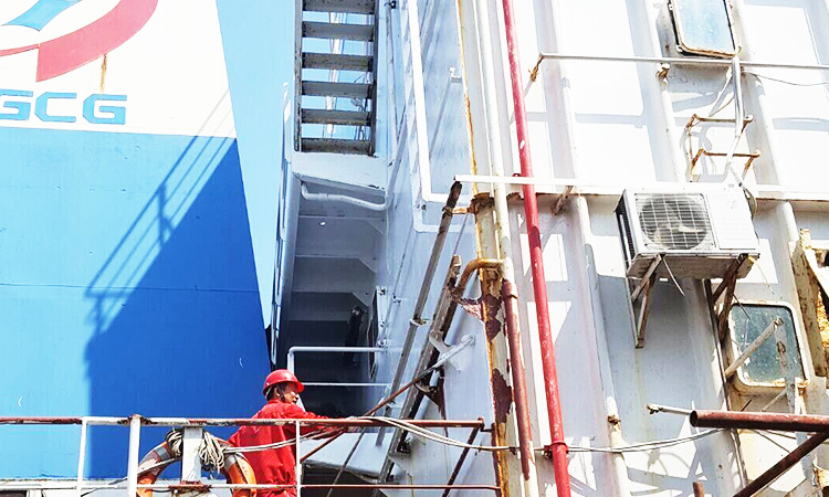 此次修理不但需要船舶上塢進行水下船體和設備檢修等,還有大量需自修的項目,其中除銹刷漆、救生艇檢修和甲板部位的各類設備、器材的維修等諸多項目都是室外作業,天氣炎熱,對船舶修理難度較大;同時還需接受蘇州船檢局專業人員現場登船進行船舶檢驗。