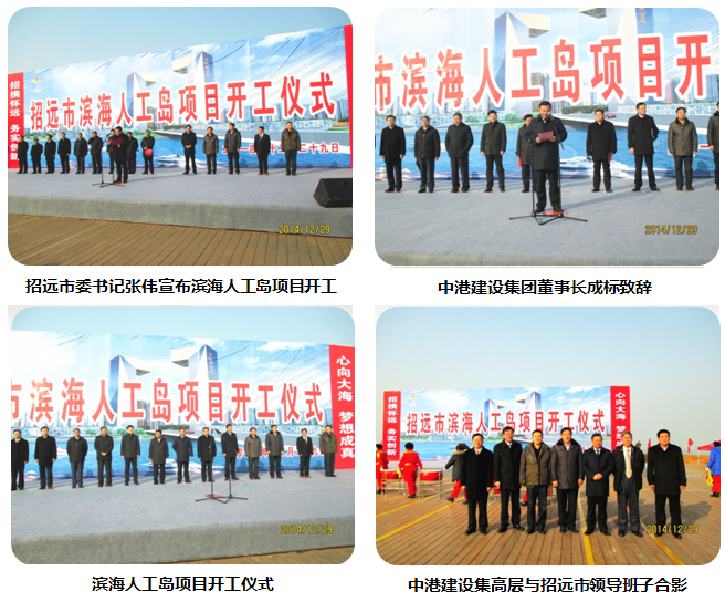2014年12月29日10點(diǎn)08分,中港建設(shè)集團(tuán)舉行了濱海人工島項(xiàng)目開工儀式。山東省招遠(yuǎn)市領(lǐng)導(dǎo)張偉、王光耀、林建東、徐林宏、郝永平、趙曙光、馬立海等市級領(lǐng)導(dǎo)班子成員,中港建設(shè)集團(tuán)成標(biāo)董事長、秦高舉副董事長、崔大凡副總裁、黃波副總裁等集團(tuán)高管,總承包單位中國技術(shù)進(jìn)出口公司相關(guān)負(fù)責(zé)人,招遠(yuǎn)市各鎮(zhèn)主要負(fù)責(zé)人,及人工島指揮部成員、各有關(guān)單位一同參加開工儀式。